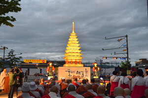 치유와 화합의 메시지를 담은 봉축기원탑이 ‘전주의 밤’을 밝혔다. 전북특별자치도 부처님오신날 봉축위원회는 12일 전주역 마중길 분수대 과장에서 불기2569년 부처님오신날을 축하하는 ‘봉축기원탑 점등식’이 열렸다. 이날 행사는 전북특별자치도 부처님오신날 봉축위원회가 주최한 자리로 조계종 제17교구 금산사를 비롯해 태고종, 용화종, 보문종 등 여러 불교 종단이 함께 뜻을 모았다.‘세상에 평안을, 마음에 자비를’이라는 올해의 봉축 표어처럼, 이날 점등식은 치유와 화합의 메시지를 전하기 위한 의미 있는 첫걸음이었다. 점등식의 주인공은 단연