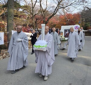 평생 포교의 길을 밝힌 수행자 금산당 도영 대종사 다비식이 거행됐다. 불기 2569년(2025년) 11월 24일 오후 10시, 대한불교조계종 원로의원이자 전 조계종 포교원장을 역임한 금산당 도영 대종사의 영결식이 김제 금산사 처영문화기념관에서 엄수됐다. 영결식에는 종단 주요 스님들과 사부대중이 참석해 대종사의 원적을 애도했다. 영결식은 명종 5타를 시작으로 개식, 삼귀의례, 영결법요, 추도입정, 영결사, 추도사 등의 순서로 엄숙하게 진행됐다.이어 조가와 헌화, 인사말씀, 공지사항이 이어졌으며, 사흥서원 후 발인이 이뤄졌다. 다비는