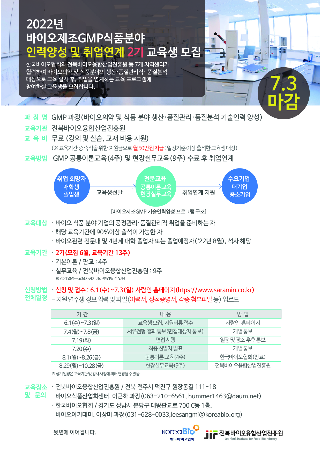 바이오인력양성사업은 산업통상자원부 사업으로 한국바이오협회가 주관하며 2014년 사업 시작 이후 올해로 9년차 교육을 진행중이다.