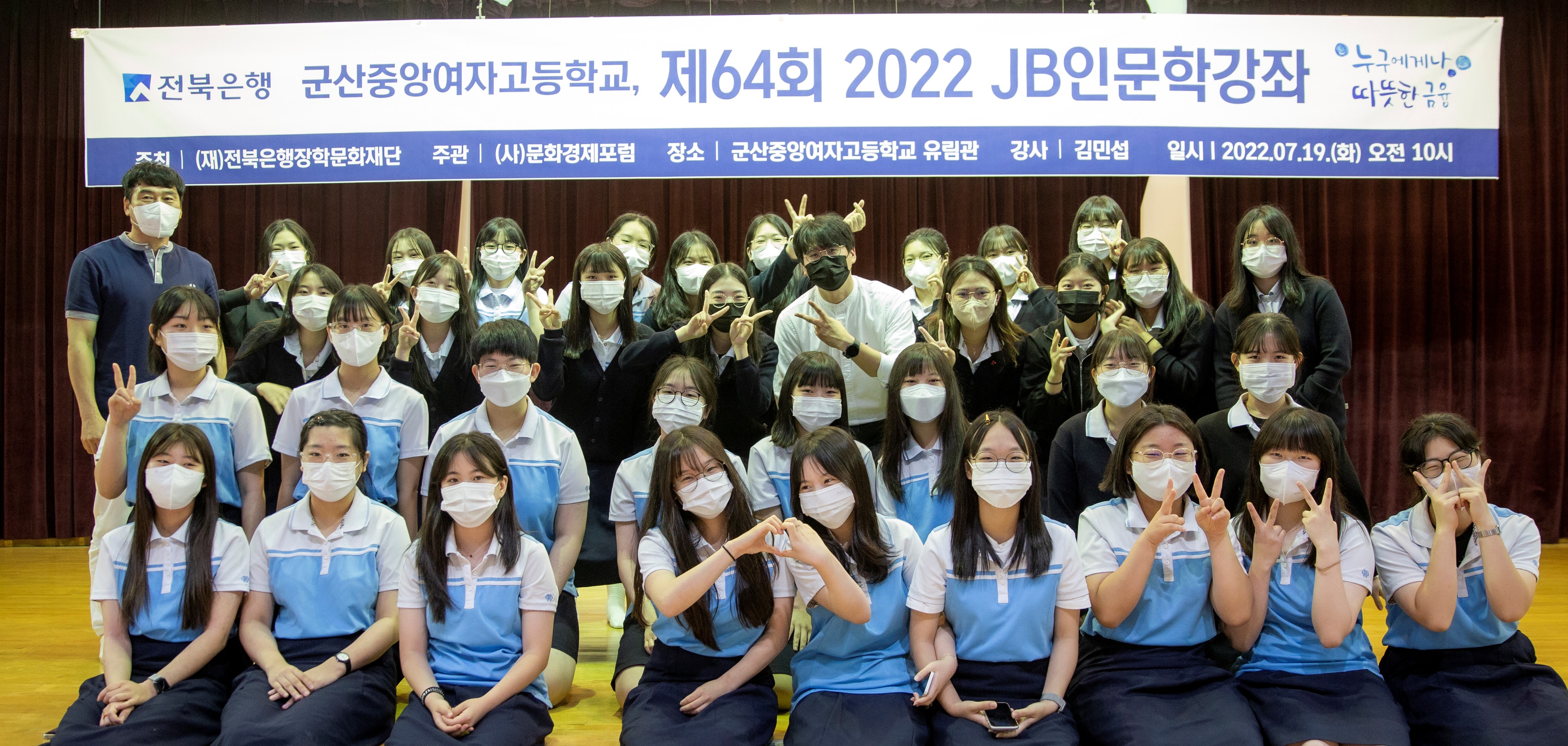 JB금융그룹 전북은행(은행장 서한국)후원으로 운영하는 (재)전북은행장학문화재단(이사장 김영구)은 19일 군산중앙여고에서 ‘2022 JB인문학 강좌’를 개최했다.