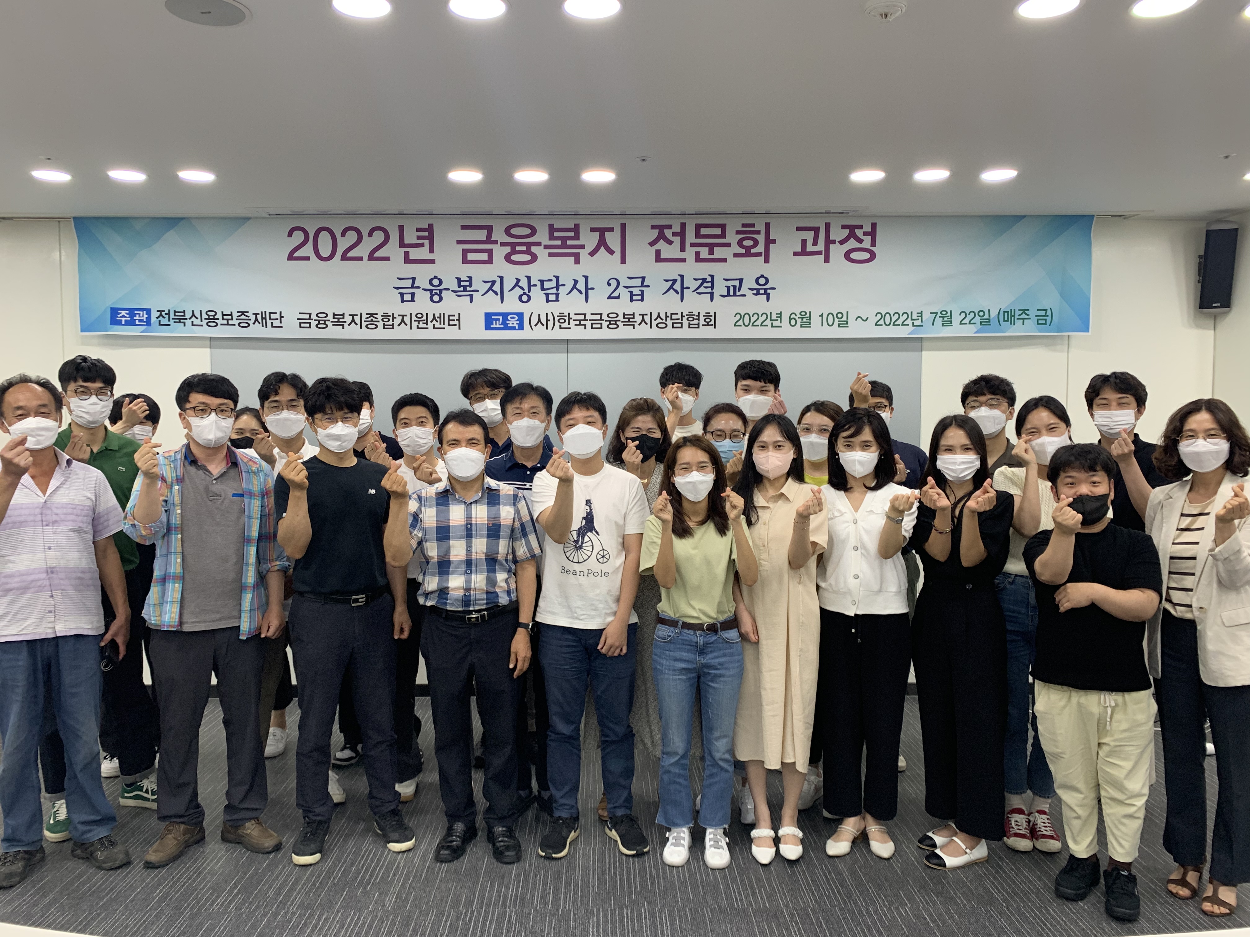 전북신보가 운영하는 금융복지종합지원센터가 사회복지분야 종사자와 일반인을 대상으로 금융복지전문화과정 교육을 통해 올해 총 156명의 교육생을 배출했다고 22일 밝혔다.