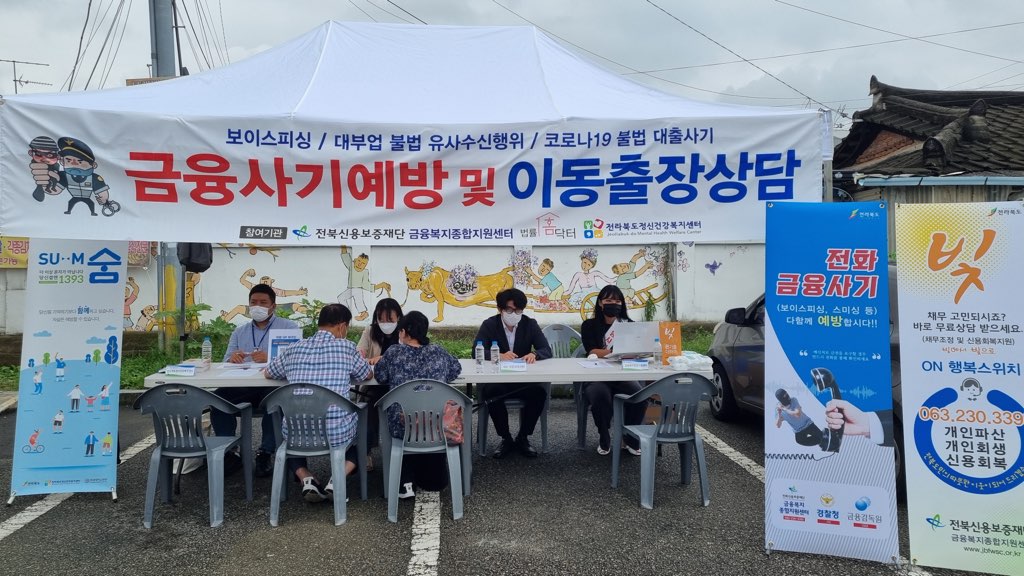 전북신보 내 금융복지종합지원센터는 지역의 관할경찰서와 도내 시·군청과 합동으로 각종 보이스피싱 및 불법사금융 피해 예방을 위해 금융사기 예방교육과 캠페인을 진행하고 있다.