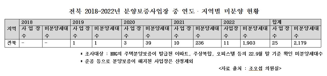전북 미분양 연도별로 보면 2019년 1세대, 2020년 39세대, 2021년 236세대, 올해 1903세대로 폭증했다.