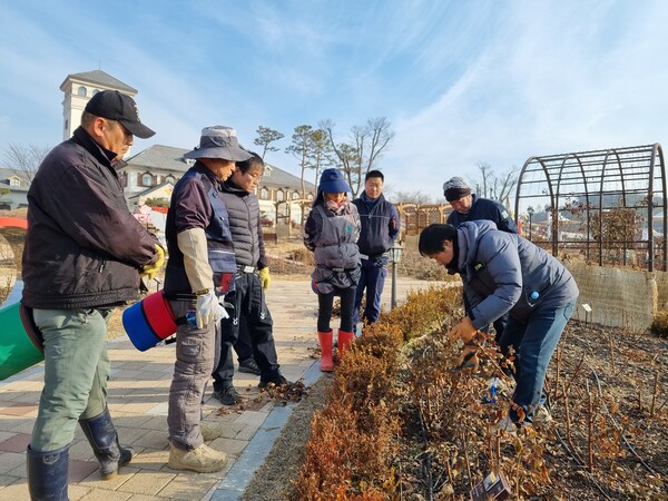 군은 곡성 장미원, 전주수목원 장미원을 현장 견학하고 정원 장미를 직접 운영하고 있는 박철민 정원사를 초청, 직접 전정에 대한 실습 교육을 실시하여 사계절 장미원의 정원 장미 전정 작업을 체계적으로 진행하고 있다.