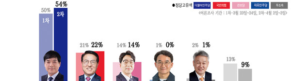 국민의힘 정운천 후보(22%)와 진보당 강성희 후보(14%), 무소속 김광종 후보(1%), 자유민주당 전기엽 후보(0%)가 뒤를 이었다.