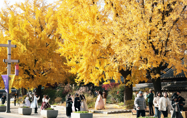 완연한 가을 날씨를 보인 19일 전주 한옥마을 경기전을 찾은 관광객들이 은행나무가 노랗게 물들어 가는 산책로를 거닐며 늦가을 정취를 만끽하고 있다. 이원철기자 이원철 기자 kppa3@hanmail.net 기자의 다른기사 저작권자 © 전라일보 무단전재 및 재배포 금지 개의 댓글 회원로그인 작성자 비밀번호 댓글 내용입력 댓글 정렬 최신순 추천순 답글순 BEST댓글 BEST 댓글 답글과 추천수를 합산하여 자동으로 노출됩니다. 닫기 더보기 댓글삭제 삭제한 댓글은 다시 복구할 수 없습니다. 그래도 삭제하시겠습니까? 비밀번호 닫기 댓글수정 댓글 수정은 작성 후 1분내에만 가능합니다. 본문 / 400 비밀번호 닫기 내 댓글 모음 닫기