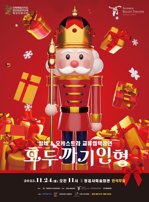 전북특별자치도문화관광재단(이하 재단)의 ‘공연장상주단체육성지원사업’에 선정된 전북발레시어터와 사단법인 클나무가 교류협력공연 ‘발레&오케스트라 호두까기 인형’을 24일 오전 11시 정읍사예술회관, 오후 7시 30분 부안예술회관에서 하루 2회 무대에 올린다.
