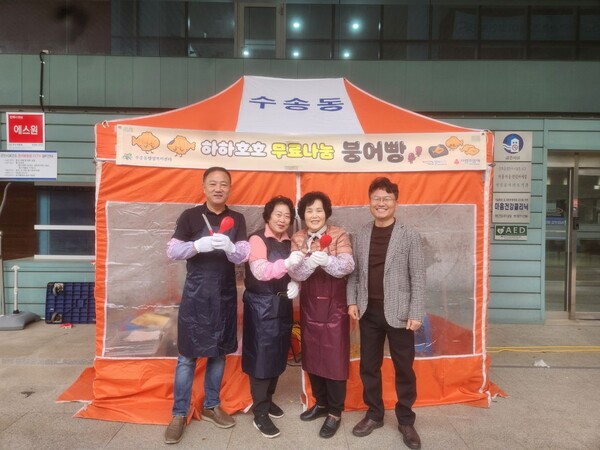 25일 군산시 수송동 천사누리지역사회보장협의체가 이웃사랑을 실천하기 위해 ‘하하호호 나눔 붕어빵 사업’을 추진한 것이다.