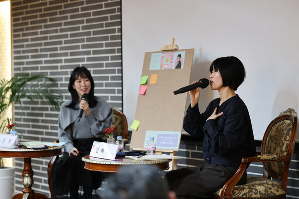 작가는 잠시 숨을 고르며, 때로는 웃음을 머금은 채 진솔한 답변을 이어갔다. 마치 친구와 대화를 나누듯 고개를 끄덕이며 작가의 말 한마디 한마디에 귀를 기울였다.