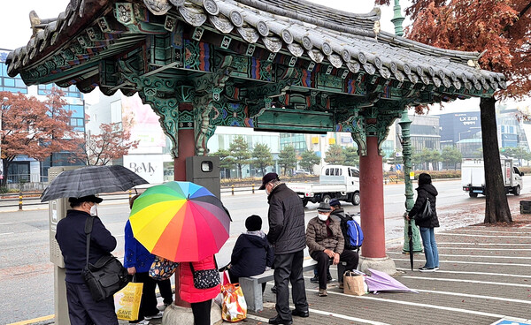 임채성(86)씨는 “노인 일자리 센터를 방문하면 항상 이 정류장을 이용한다. 오늘같이 비가 오고 추운 날에 거창하게 생긴 지붕이 제대로 비바람을 못 막아줘서 추위에 떨며 기다리고 있다”고 했다.