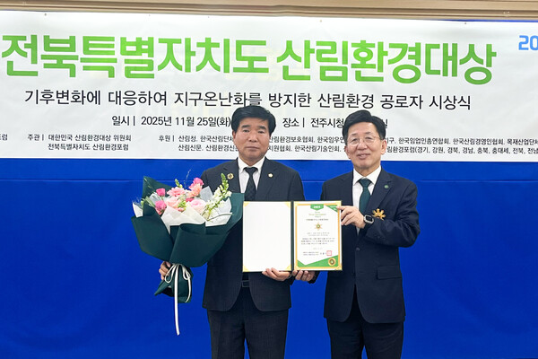 수상 직후 김 의장은 “이번 상은 저 혼자의 노력이 아니라, 남원의 푸른 환경을 지키기 위해 애쓰는 모든 시민과 산림 관련 종사자들의 헌신 덕분”이라며 감사의 뜻을 전했다.